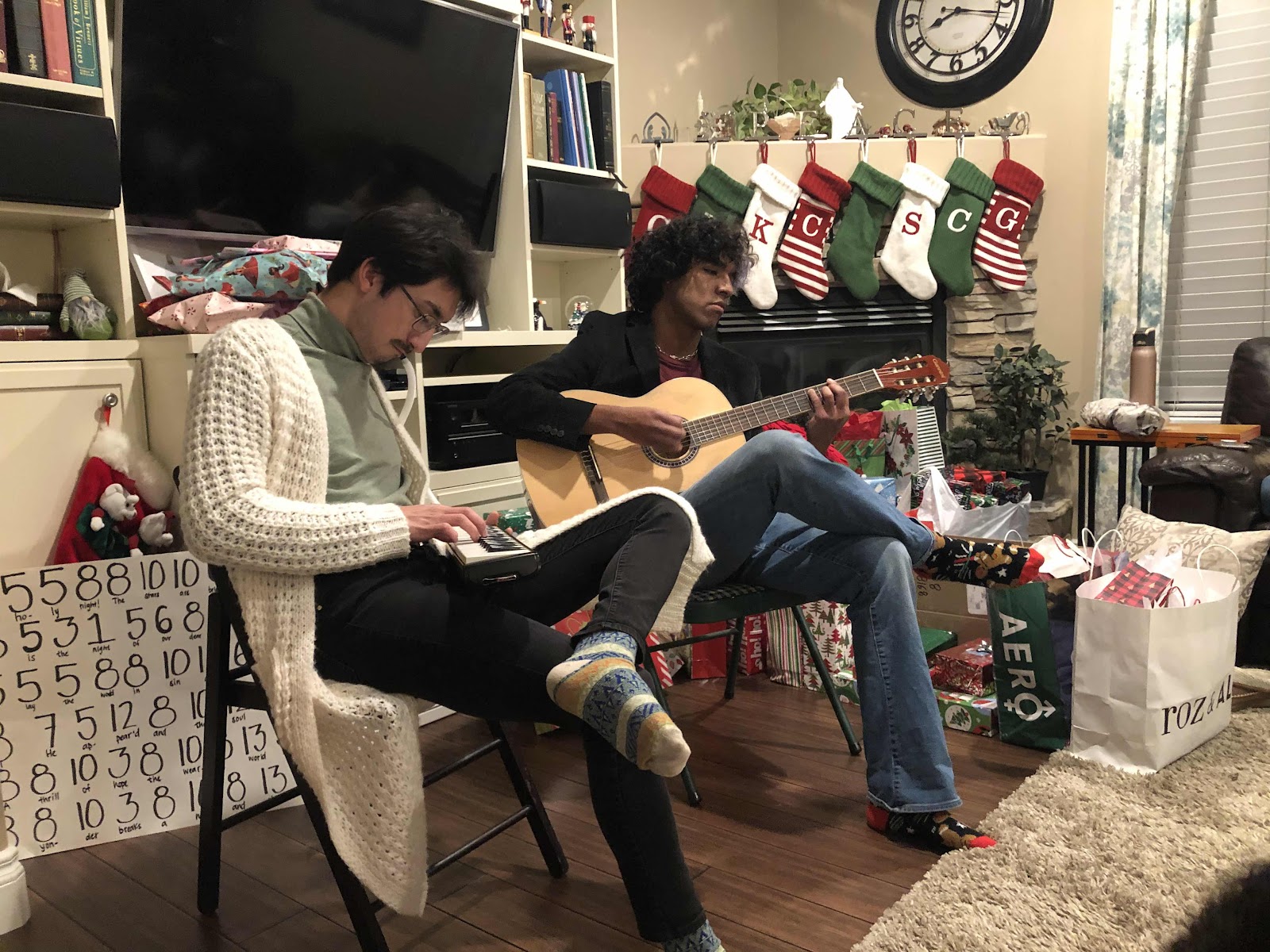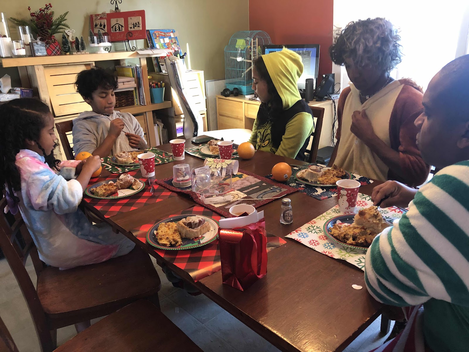 We had a wonderful Christmas Eve filled with all of the usual traditions. A candlelight Pache dinner, Ponche, so much talent displayed in the talent show including a duet with dad and Zuri. Among us was super popular this year and Kailee made everyone little stuffed characters from the game.