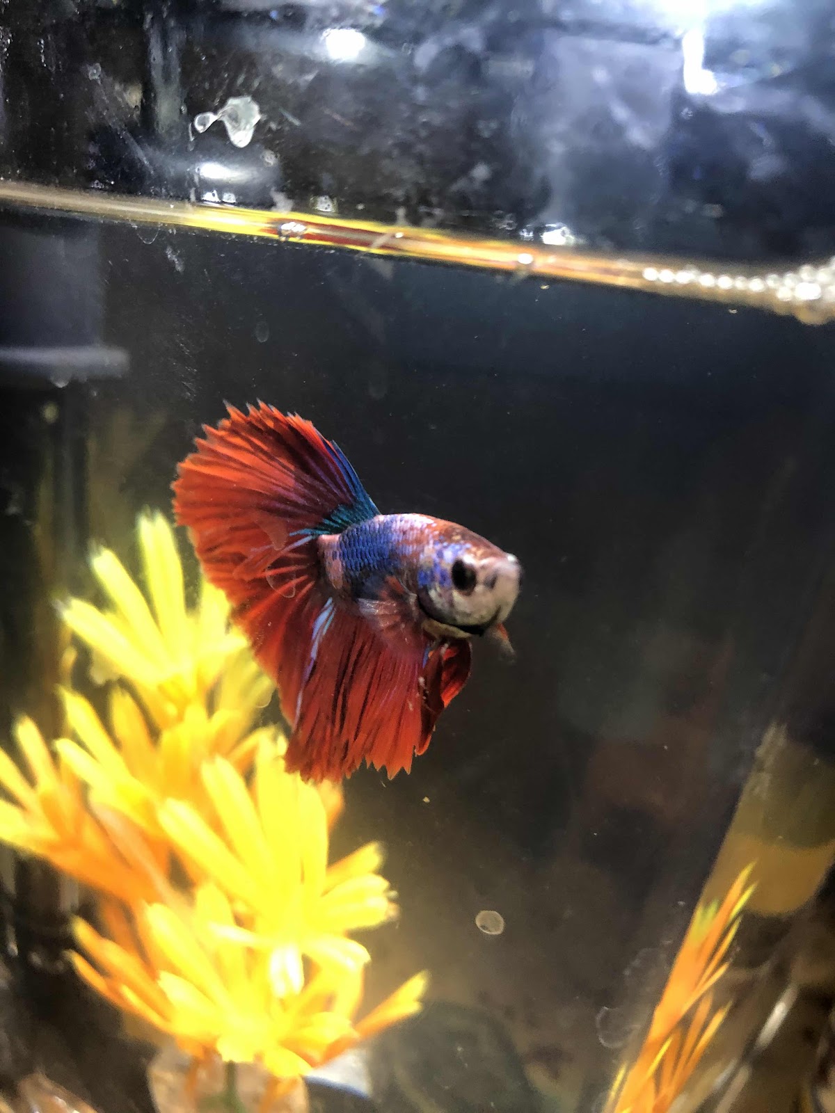Here is Poseidon, Taye's new Beta fish. Zuri also got a blue beta fish, and some water frogs. And Jasmine got some goldfish.