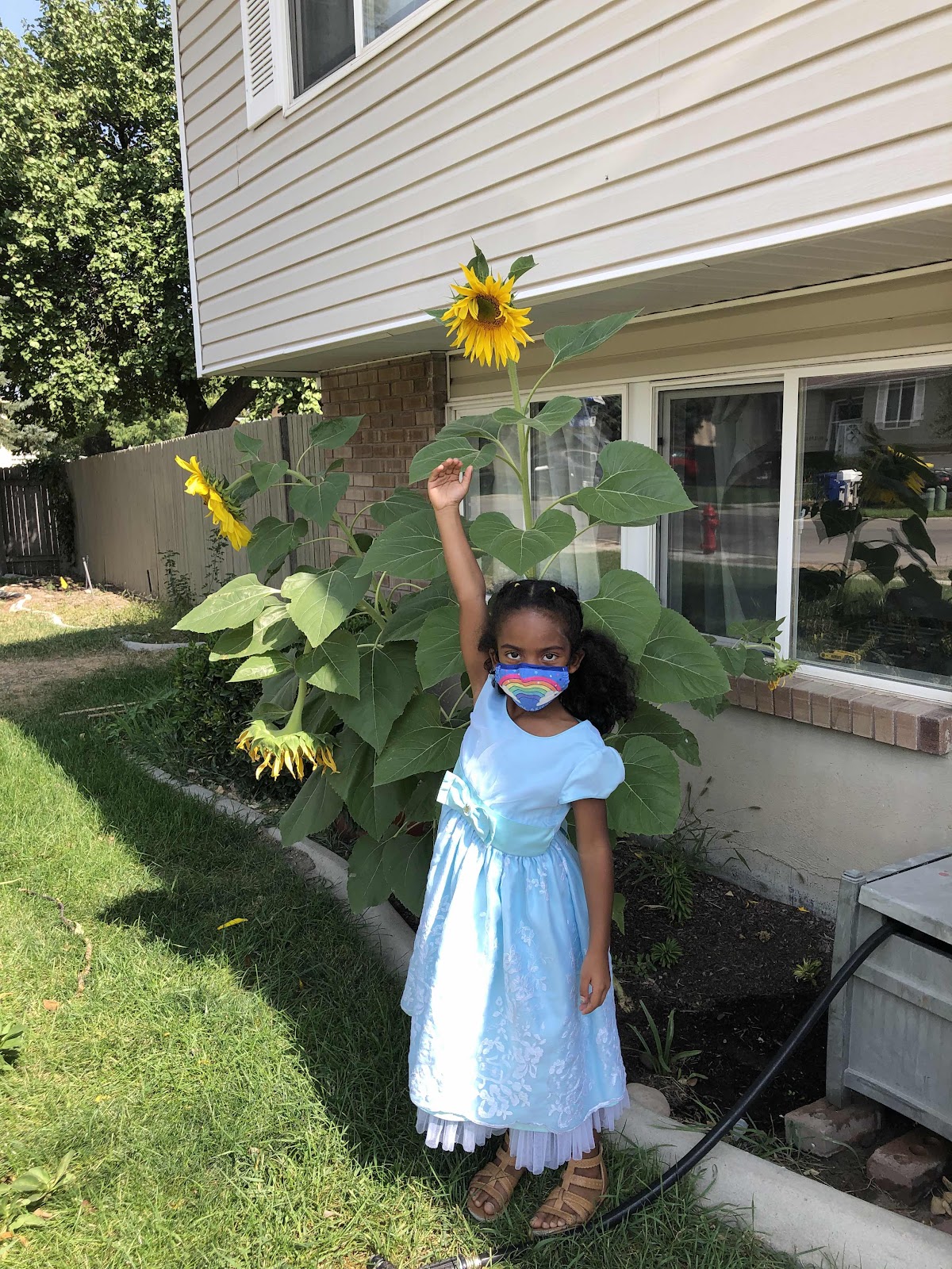 Zuri showing how big she is next to the huge sunflowers!